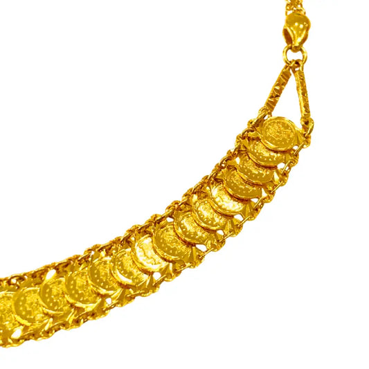Ladies coin necklace in 18k yellow gold