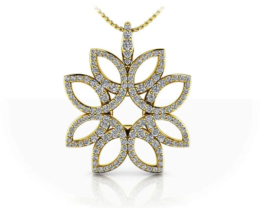 Exotic Flower Diamond Pendant Available In 14K and 18K Yellow or White Gold