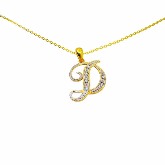 Letter D Initial 10K Yellow Gold Dazzling Diamond Necklace