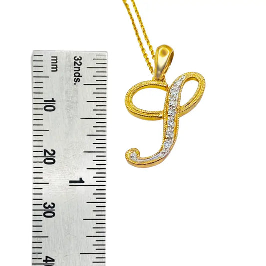 Initial Necklace Letter R 10K Yellow Gold with Dazzling Diamonds
