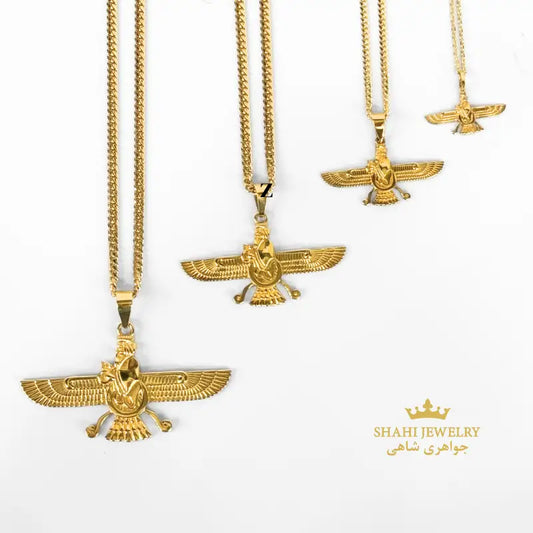 Farvahar Persian, Zoroastrian, Ahura Mazda Pendant in 18K Yellow Gold Unisex Available in 4 sizes