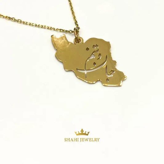 Persian Calligraphy 18K Solid Gold Iran Map Pendant and Charm | Patriot Jewelry | Persian Charm